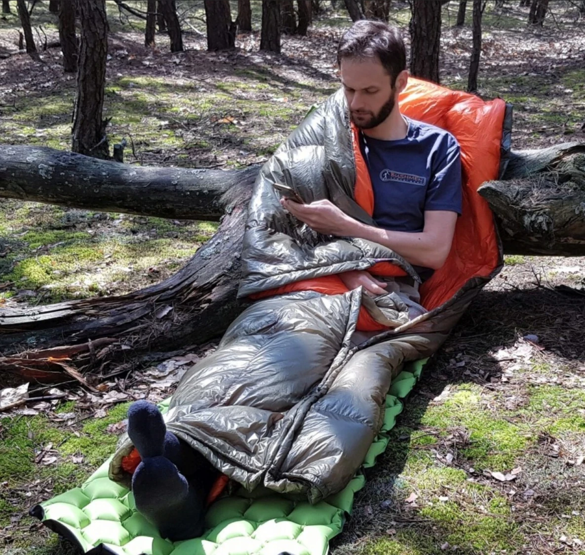 Monitoiminen retkeilyväline, saat tehtyä siitä hetkessä top quiltin riippumattoon, makuupussin alustalla nukkumiseen tai kahden hengen retkipeiton.