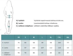 - Venyvä ja joustava stretch materiaali eniten liikkuvuutta vaativissa osioissa