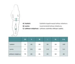 - Venyvä ja joustava stretch materiaali eniten liikkuvuutta vaativissa osioissa