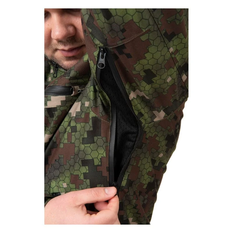 Dovrefjell Hexagon on täydellinen liikkuvaan ja kyttäysmetsästykseen. Kangas on lähes äänetön ja lisäksi takki on myös muotoiltu parhaan mahdollisen liikkumisvapauden takaamiseksi.