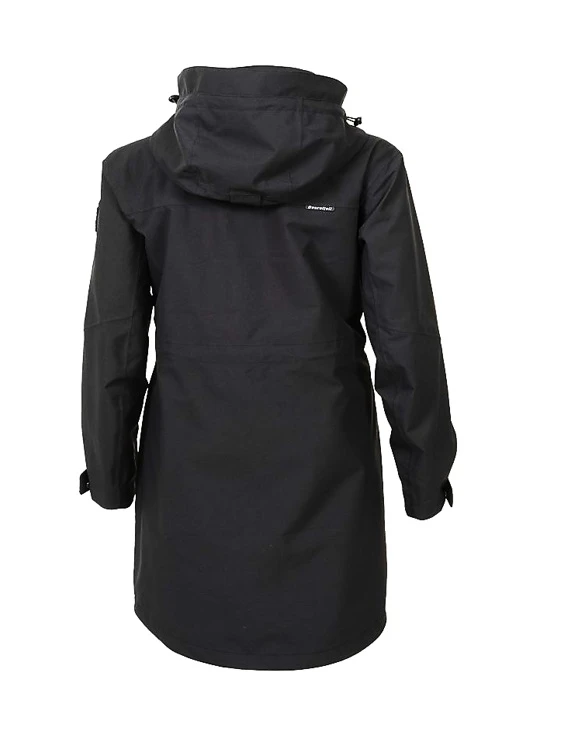 Dovrefjell Vilde on pitkä takki, jossa on veden- ja tuulenpitävä 2-kerroksinen rakenne. Ulkokangas on laminoitu yhteen kalvon kanssa, samalla kun sisäpuolinen löysä vuori lisää mukavuutta.