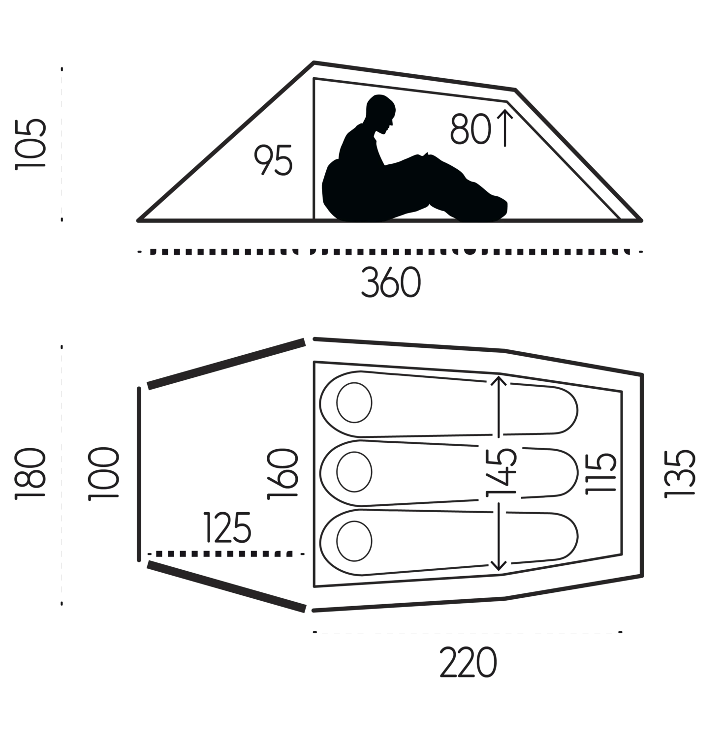 Kevyt kolmen hengen vaellusteltta absidilla. Teltan rakenne on optimoitu niin, että paino on saatu pysymään mahdollisimman keveänä. Neljän vuodenajan teltta, joka on helposti muokattavissa erilaisiin lämpötiloihin soveltuvaksi.
