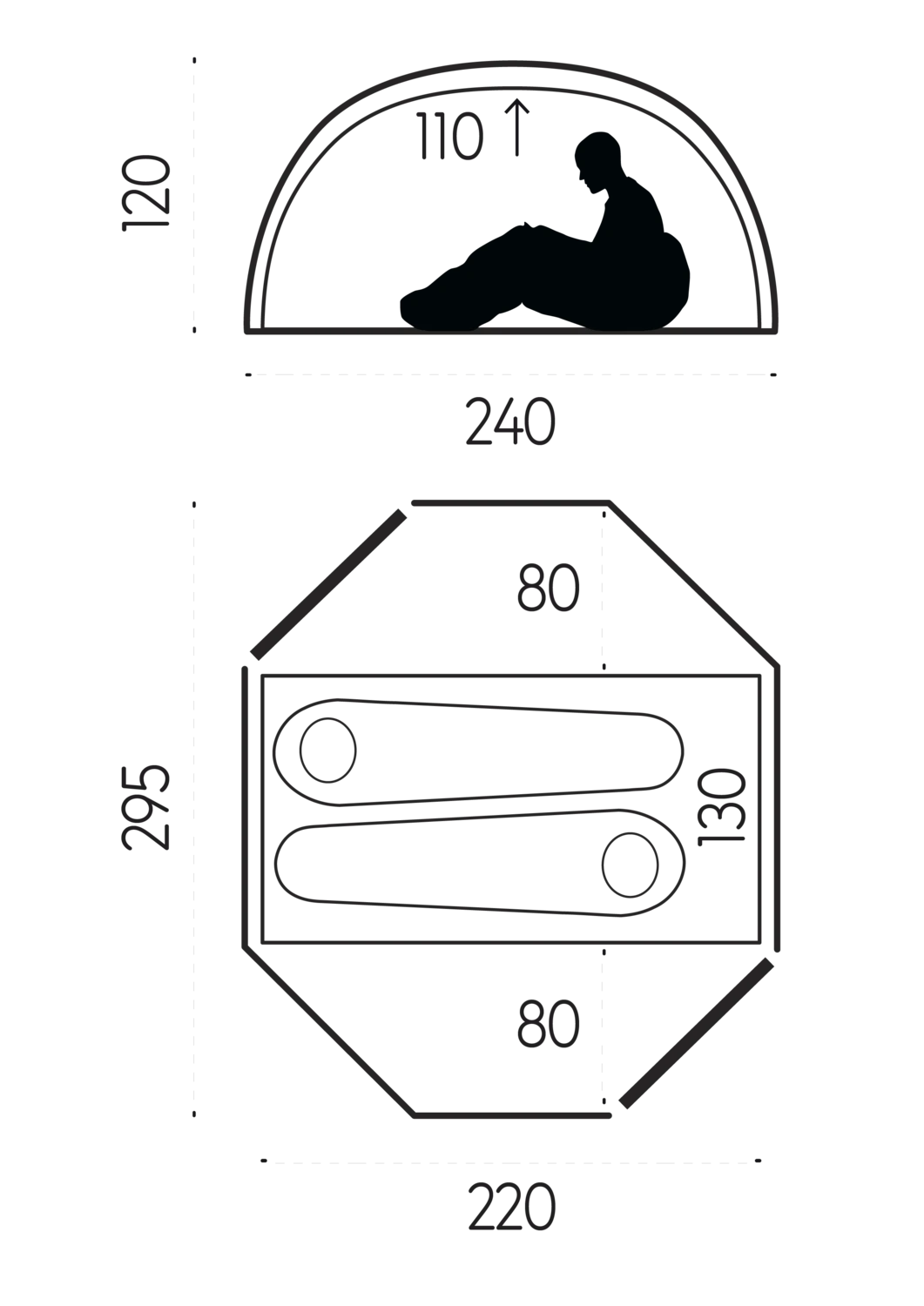 Kevyt itsestäänseisova teltta, jossa on erinomainen ilmanvaihto ja kaksi absidia, jotka voidaan avata kokonaan maisemien ihailua varten. Vakaa, ristikkäin kahdella kaarella pystytettävä teltta.
