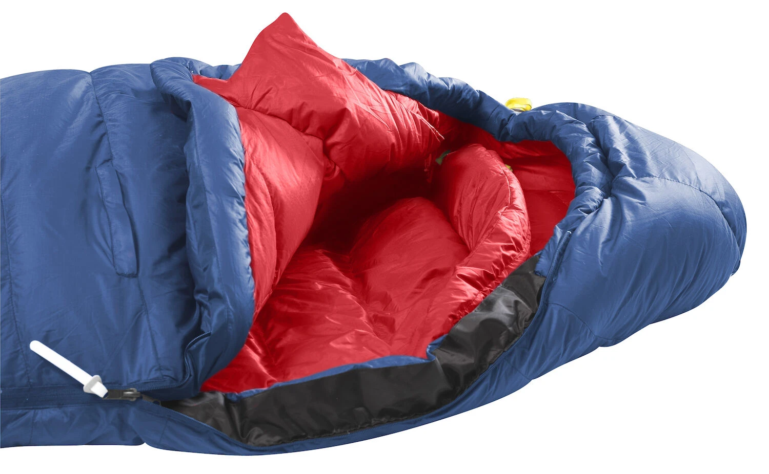 Täyte laadukasta untuvaa, joka jaettu niin, että makuupussi lämmittää parhaalla mahdollisella tavalla. Täytettä on erityisen paljon päällä, vartalon alueella ja jalkopäässä. Pääosa lämmittää miellyttävästi kauttaaltaan ja siinä on untuvatäytteinen lämpökaulus, joka yhdessä säätönyörin kanssa pitää lämmön pussin sisällä. Täyspitkä kaksisuuntainen vetoketju helpottaa ilmanvaihtoa, ja aukon kaksi untuvatäytteistä suojalistaa estävät vedon. Suojalistoissa on kaitale, jonka ansiosta vetoketju ei takerru niihin. Helposti käsiteltävät vetoketjun vetimet ja säätönyöri nahkaa. Ulkopuolella pieni vetoketjutasku pikkutavaroille, jotka haluat pitää käden ulottuvilla. Tilavassa jalkopäässä on reilusti tilaa jaloille. Jalkopäässä olevat silmukat helpottavat säilytystä.