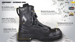 HAIX Airpower XR1 on moderni turvakenkä kovaan ammattilaiskäyttöön.Päälimateriaalina jalkineessa on käytetty vedenpitävää nahkaa, joka on myös hyvin hengittävää. Päälimateriaalissa on Sun Reflect-ominaiuus, joka vähentää auringon keittävää vaikutusta heijastamalla säteet pois. Näin sekä nahka, että jalkasi pysyvät viileinä jopa suorassa auringonpaisteessa. Jalkineen pohjan kuvio on muotoiltu tarjoamaan pito myös kylmemmillä keleillä. Pohjan materiaali ei tahraa, ja kestää niin öljyä kuin bensiiniä.