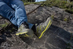 Elastinen kaksikerroksinen PU-välipohja on kevyt ja pehmustava. Vakautusvyöhyke takaa täydellisen paineen jakautumisen epätasaisessa maastossa.