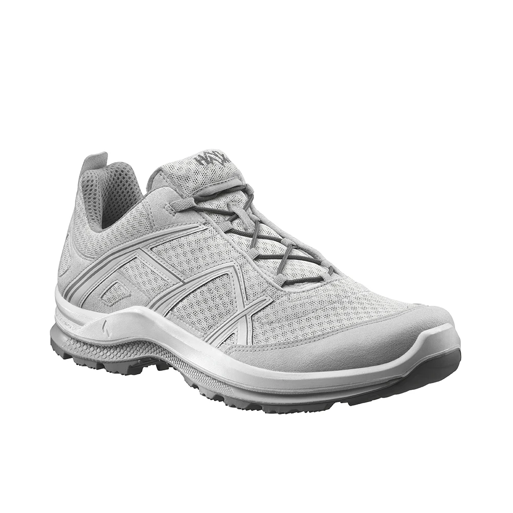 Haix Black Eagle Air on varustettu älykkäällä nauhoituksella, joka mahdollistaa sulavan kiristyksen, joka ei paina jalkaasi. Tällä älykkäällä järjestelmällä kykenet nopeasti ja mukavasti kiristämään kengät optimaaliseen kireyteen. Niistä löytyvä pikalukitus sekä nauhapussukka pitävät nauhat pois tieltäsi. Dynaframe-muotoilu tukee jalkineen keskiosaa tasapainoittaen samalla nauhoituksen painetta. HAIX® Vario Wide Fit System mahdollistaa jalkineen käytön monen mallisille jaloille. Se perustuu kolmeen erilaiseen pohjalliseen, joita voidaan vaihtaa käyttäjän jalan leveyden mukaan. Jalkineen mukana toimitetaan punainen(keskilevyinen) pohjallinen, mutta keltainen(leveä) ja sininen(kapea) pohjallinen ovat saatavilla erikseen ostettavina. Pohjallisen ollessa oikean levyinen, ja tukiessa käyttäjänsä jalkaa oikeaoppiseen asentoon, on käyttömukavuus sekä -turvallisuus huomattavasti parempia.