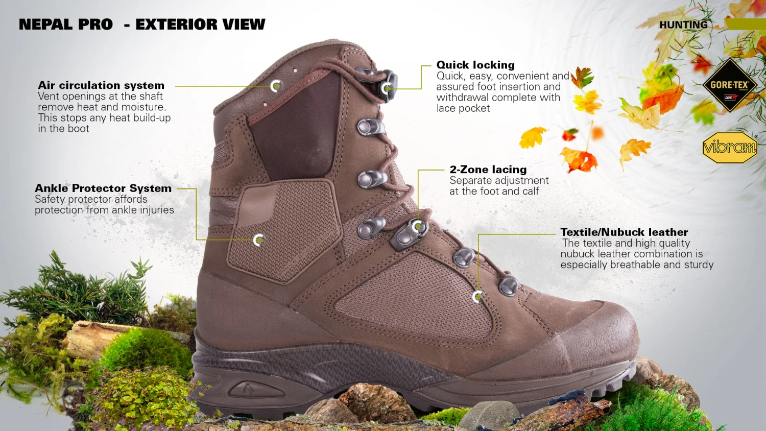 Kolmikerroksinen Gore-Tex kalvo pitää jalkasi kuivina ja kenkien sisävuori hengittää ja kestää hyvin kulutusta.