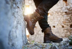 Kestävästä nupukkinahan ja tekstiilin yhdistelmästä valmistettu vaelluskenkä, joka hylkii vettä estäen kosteuden tunkeutumisen kengän rakenteisiin.