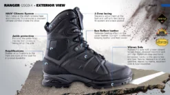 HAIX Ranger GSG9-X on huippuluokan urheilullinen armeijajalkine kovimpiinkin tehtäviin. Sen päälimateriaalina on käytetty vedenpitävää sekä hengittävää nahkaa.