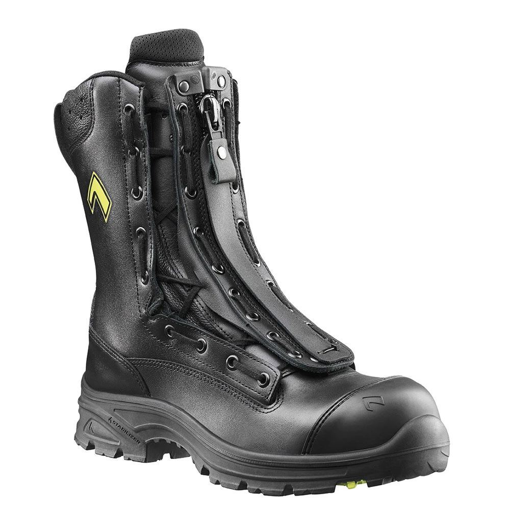 Kenkien HAIX® komposiitti-turvakärki tarjoaa täyden suojauksen putoavilta esineiltä. Se on valmistettu erittäin kevyestä kuituvahvisteisesta synteettisestä materiaalista, ja täyttää luonnollisesi myös kovimmatkin turvastandardit. Tämän lisäksi sammutusjalkine on varustettu myös elektrostaattisella ESD-suojauksella. Kengissä on myös uuden sukupolven joustava metallinen naulaanastumissuoja, joka on samalla erittäin kevyt. Kenkien kirkas väri on suunniteltu erottumaan hyvin myös savun keskellä. Haix Special Fighter Pro on varustettu patentoidulla HAIX® nauhoitusjärjestelmällä, joka on täysin suljettu, ja mahdollistaa vetoketjun ja nauhoituksen yhdistelmän ansiosta paitsi nopean pukemisen, myös tarkan kiristyksen.