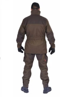Kovalla pakkasellakin kangas pysyy notkeana ja sen kanssa on mukava liikkua. Kangas pitää myös erittäin hyvin vettä ja likaa, mutta hengittää silti.