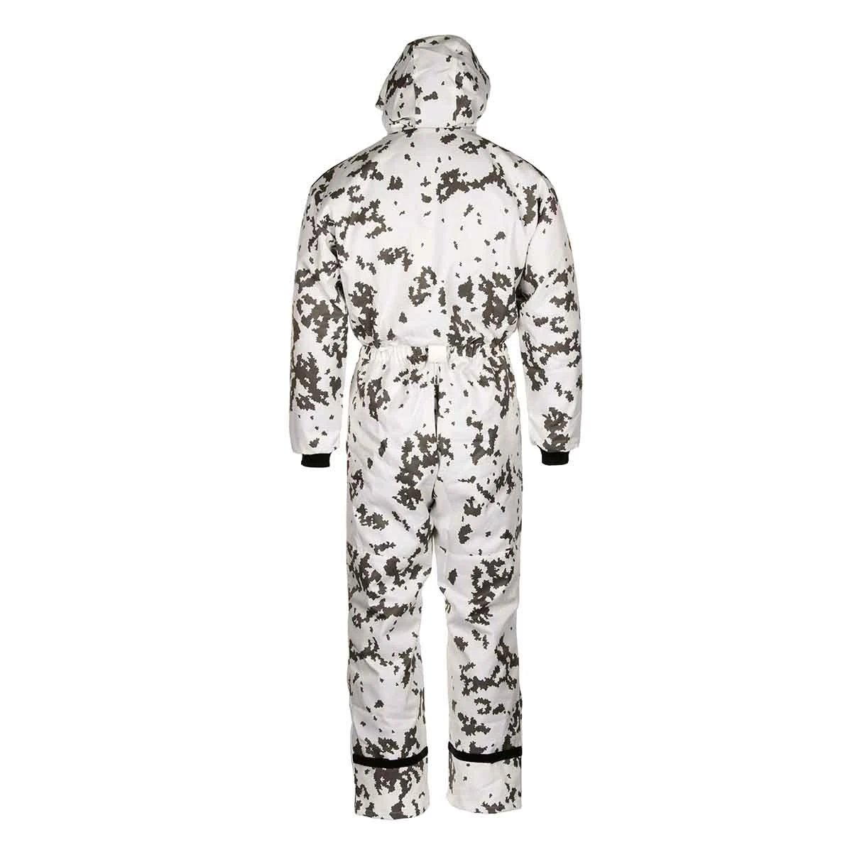 Puolustusvoimien käytössäkin oleva lumicamokuosi sulautuu lumiseen metsään kuin suojaväri, ja kahisemattoman enstex-kankaan ansiosta liikkuminen sujuu hiljaisesti ja huomaamattomasti.