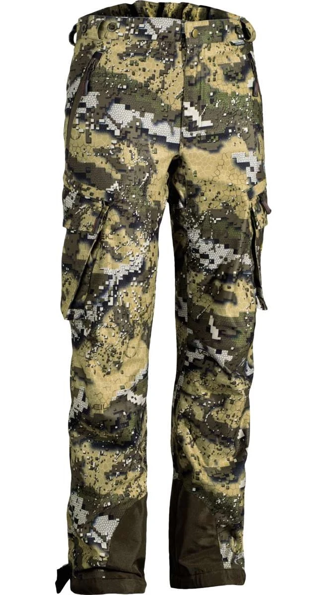 Kylmien kelien metsästyshousut. Väljä mitoitus. Taskut molemmissa reisissä. Vedenpitävä ja hengittävä Covertex 100-kalvo.