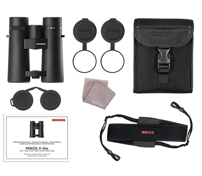 Mukana: X-lite katselukiikarit, linssinsuojat (okulaari/objektiivi), kantolaukku, linssin puhdistusliina, Neopreeni kantohihna, ohjekirja