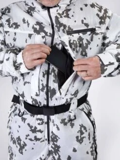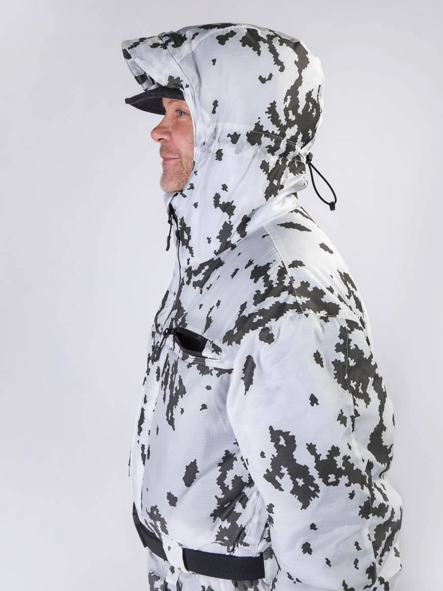 Lämpöeristeen 67g/m2 paino tekee haalarista yhdessä 73g/m2 hiilikuituvahvisteisen päällykankaan ansiosta höyhenenkevyen ja miellyttävän käytössä.