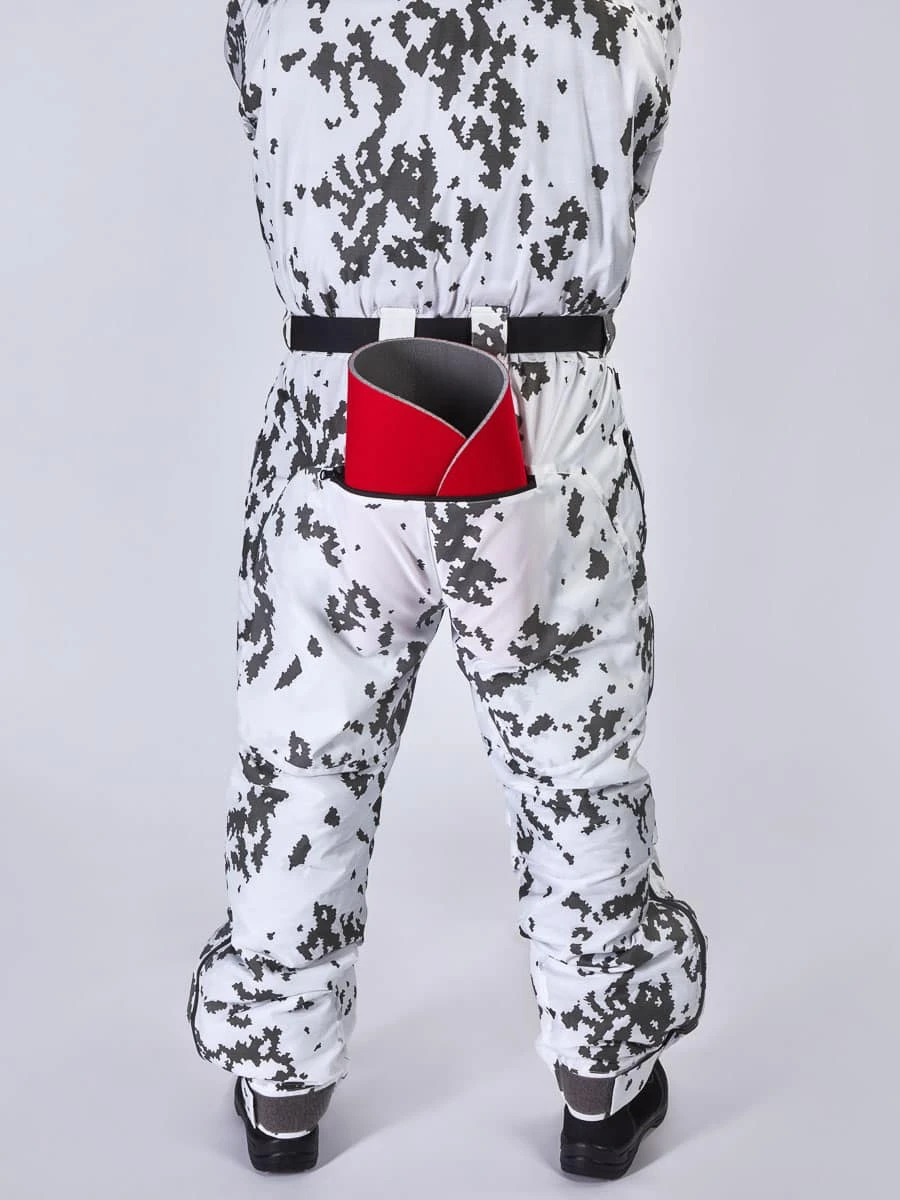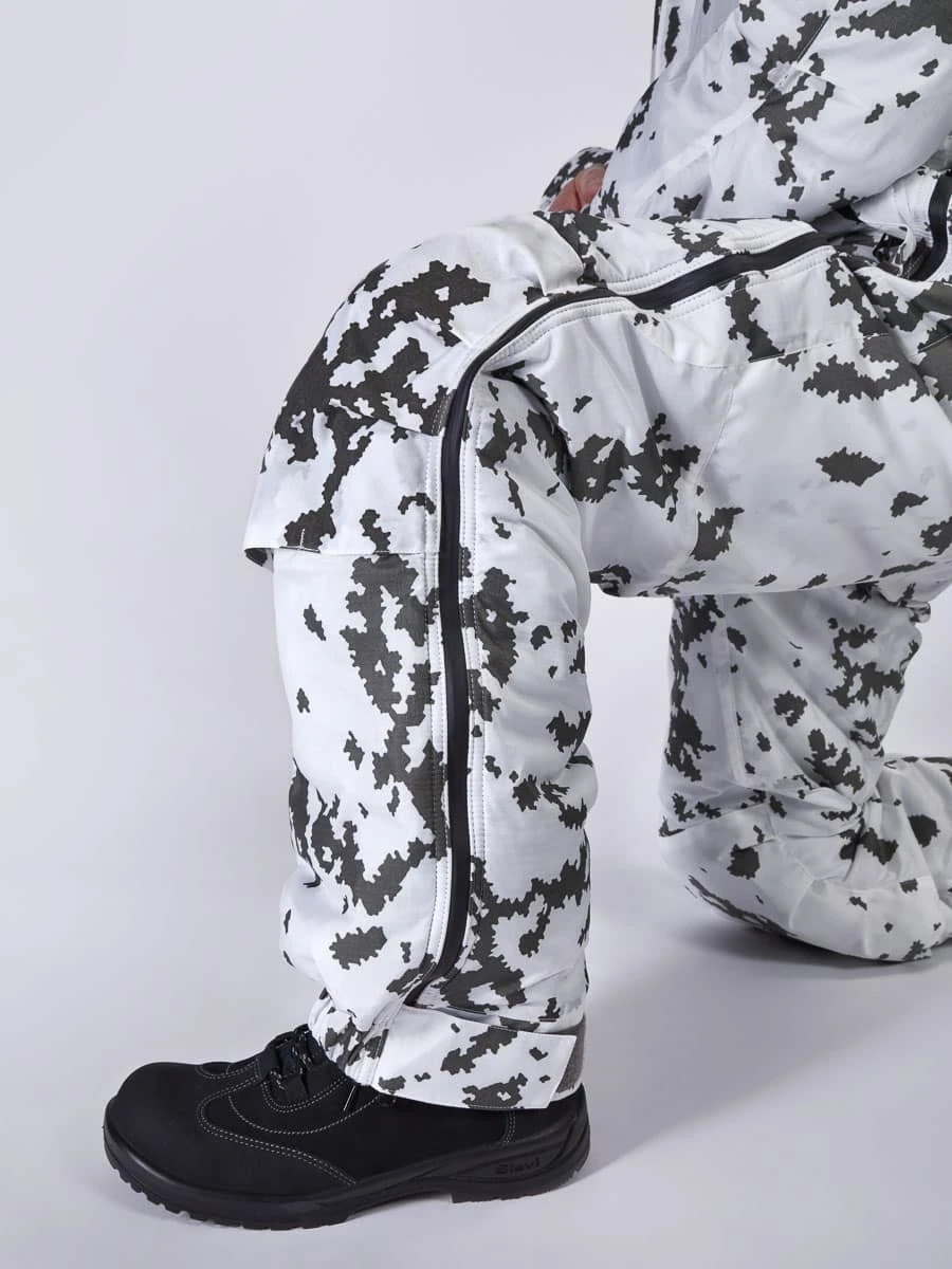 Takamus ja lahkeensuut ovat talvikuvioisessa vahvistettu kulutusta kestävällä polyester-kankaalla.