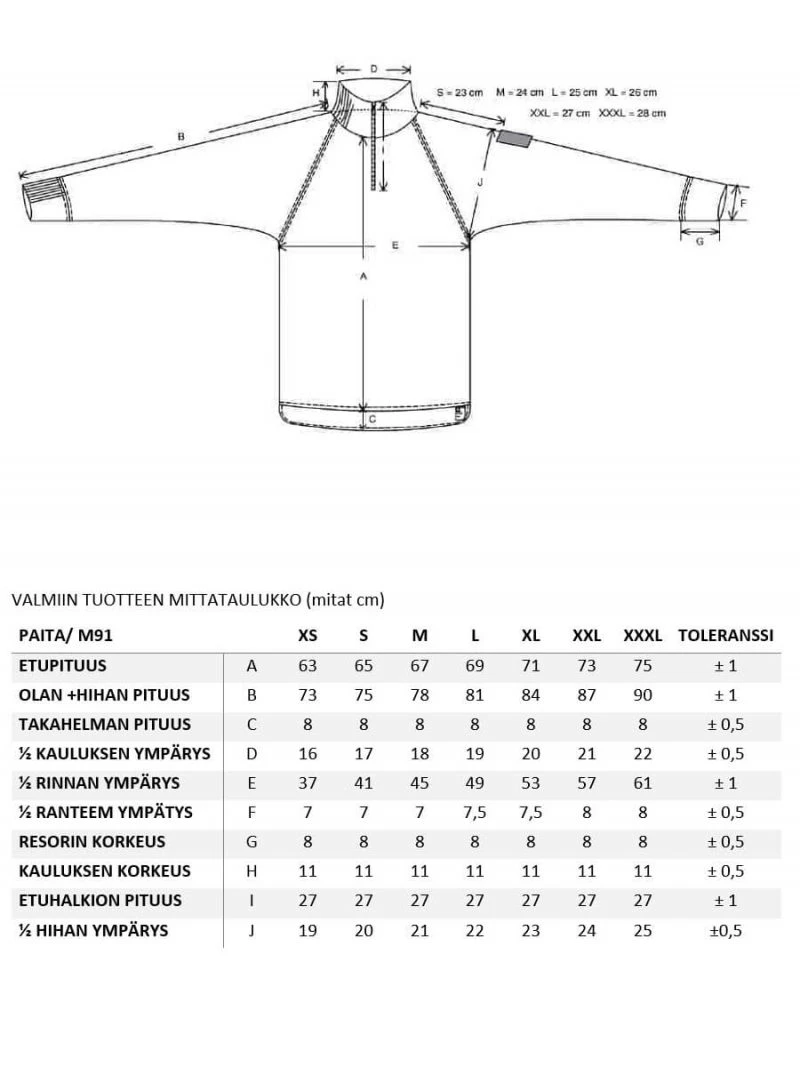 Katso kokotaulukko kuvista. Mittaathan itsesi ohjeiden mukaan ennen tilausta.