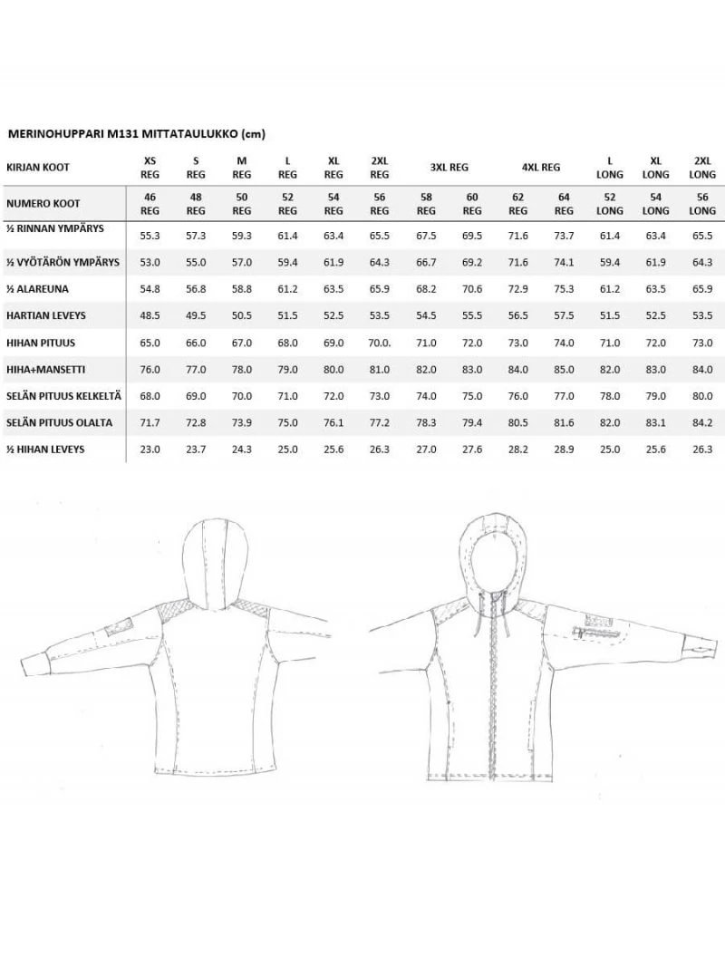 - Sisäpuoli on täynnä lämpöä varastoivia merinovillalenkkejä jotka sitovat lämmintä ilmaa sisäänsä