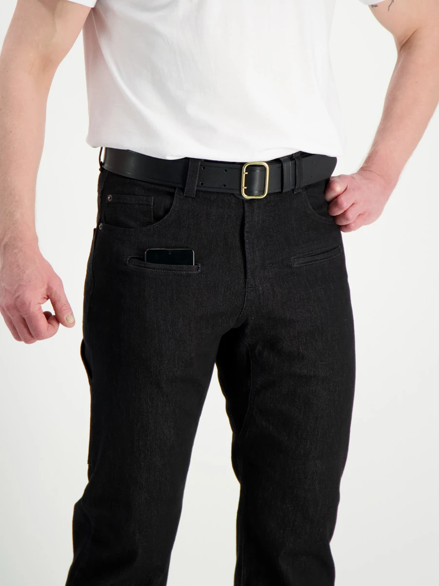 Kännykkätaskua etureidessä ei Kalifornian kullankaivajat tai maajussit tarvinneet, mutta nykyihmiselle se on käytännöllinen lisäys.