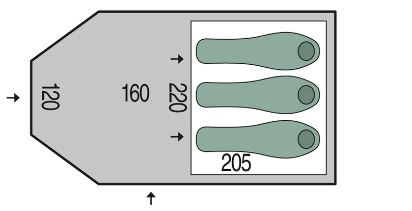 - Sisäteltan mitat 205 x 220 cm, korkeus 130 cm