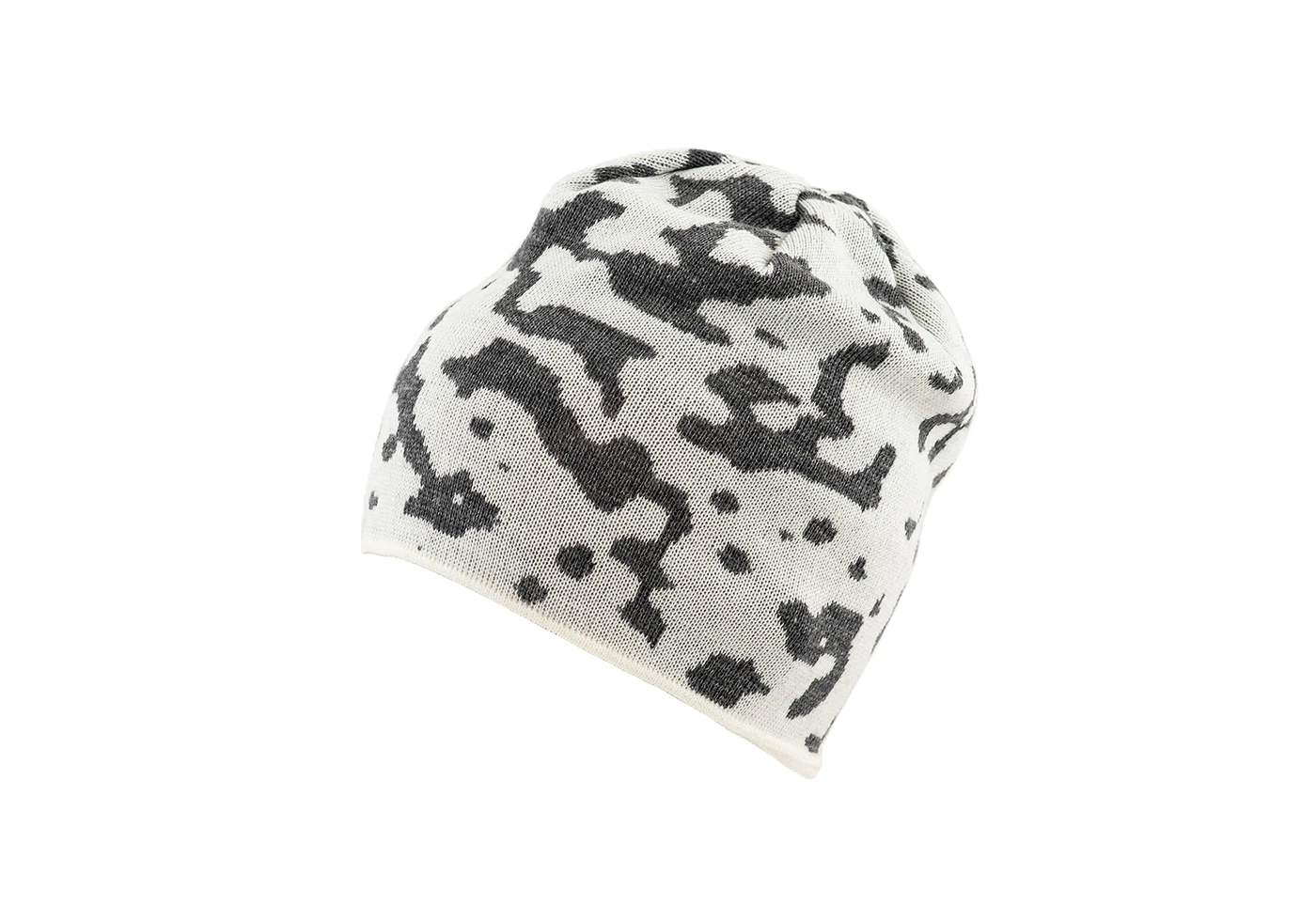 Lämmin kotimainen villasekoitepipo valkoisella camokuosilla metsästäjälle tai ulkoilijalle.