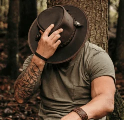 Salon Traveller stetsoni-tyylinen nahkahattu. Australiassa käsintehty 100% vesipuhvelinnahasta.