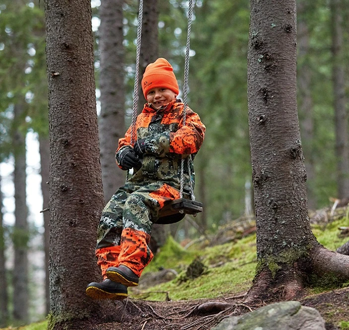 Lasten ja nuorten takki ainutlaatuisella naamiointikuviolla. Hiljainen metsästystakki DESOLVE® Veil- ja DESOLVE® Fire™-kuvioilla. COVERTEX®-kalvo tekee takista tuuli- ja vesitiiviin. Irrotettava huppu ja säädettävät hihat ja helma.