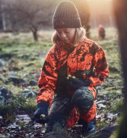 Lasten ja nuorten takki ainutlaatuisella naamiointikuviolla. Hiljainen metsästystakki DESOLVE® Veil- ja DESOLVE® Fire™-kuvioilla. COVERTEX®-kalvo tekee takista tuuli- ja vesitiiviin. Irrotettava huppu ja säädettävät hihat ja helma.