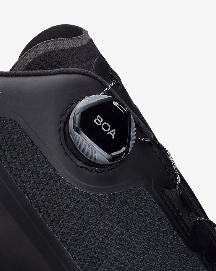 Kengän sivussa oleva Boa-kiristysmekanimsi ja nauhoitusjärjestelmä nopeuttavat ja helpottavat kengän istuuvuden säätöä.